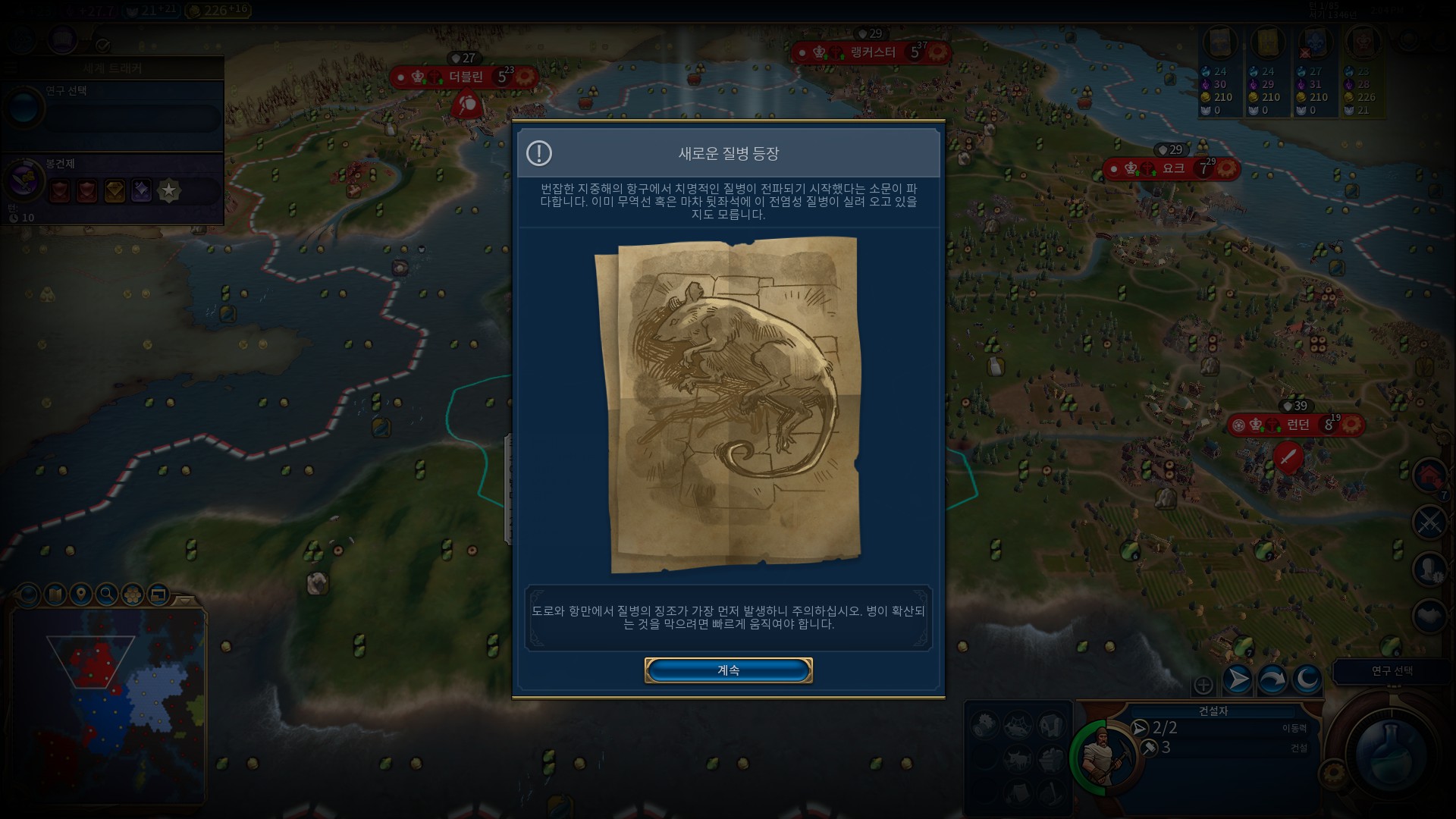 흑사병이 터지면 인구가 전부 갈려나갑니다. 심지어 도시 전역으로 퍼져나가요..