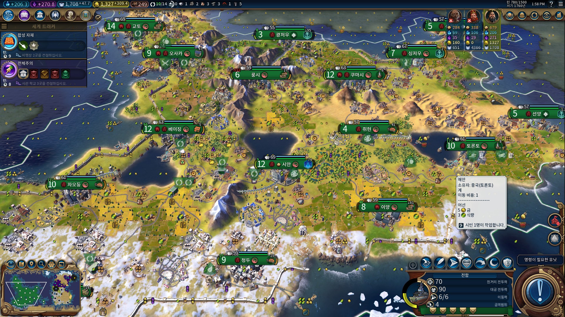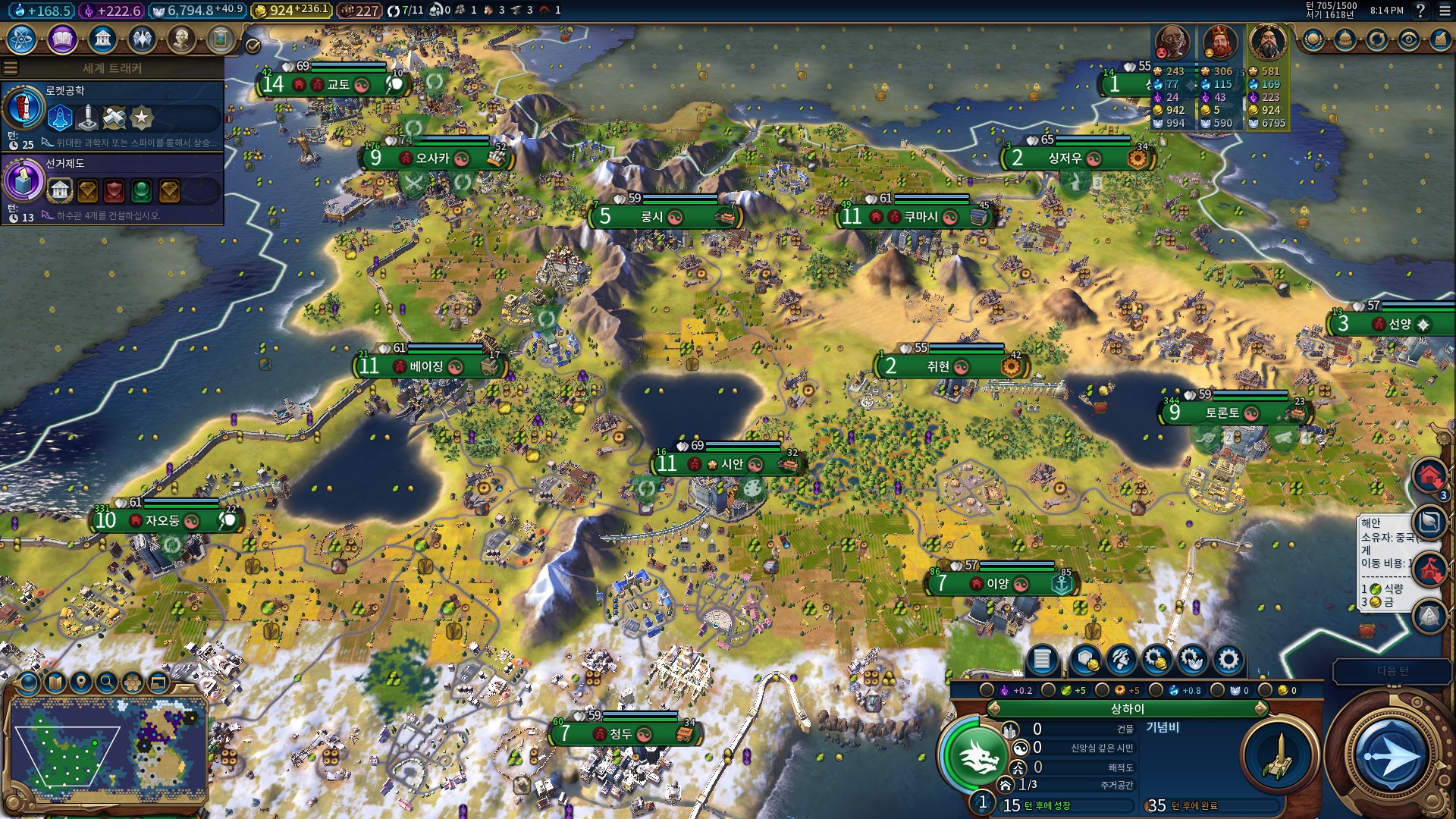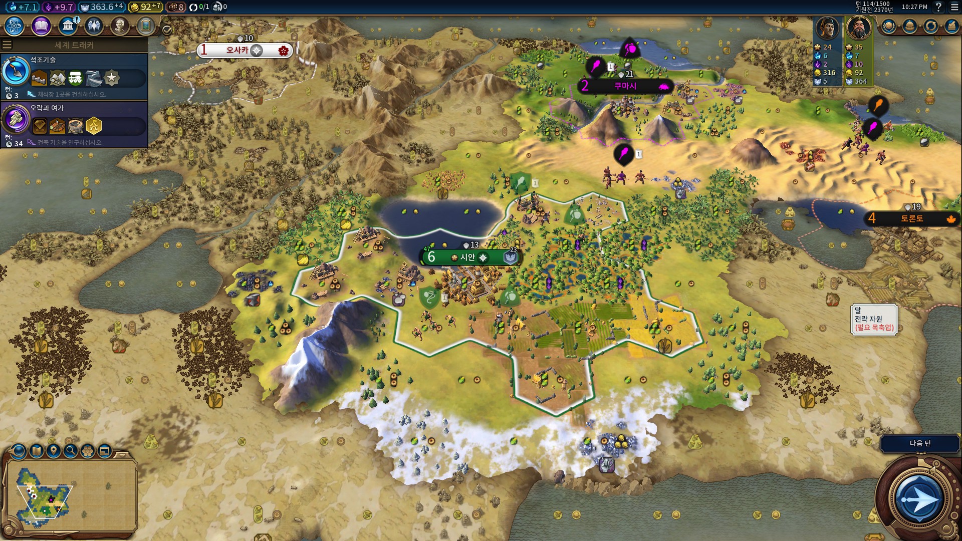열심히 도시를 늘려 봅시다.