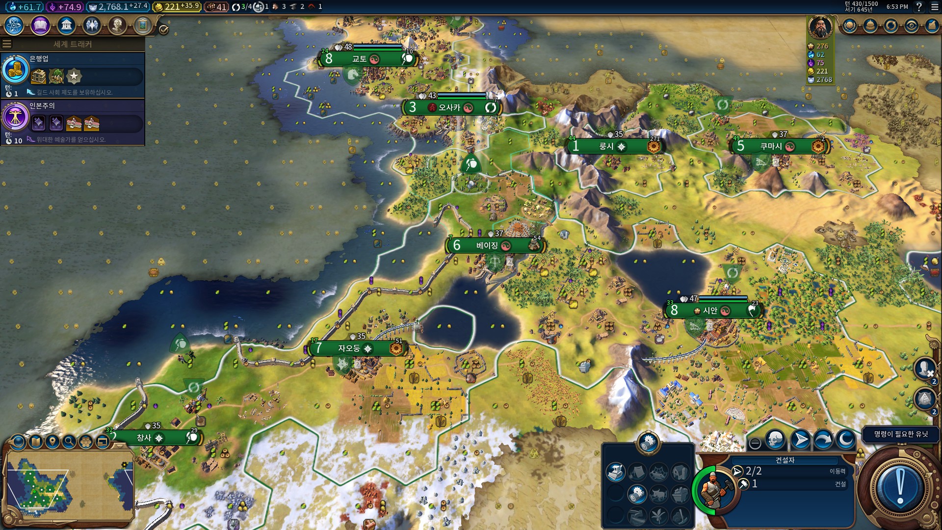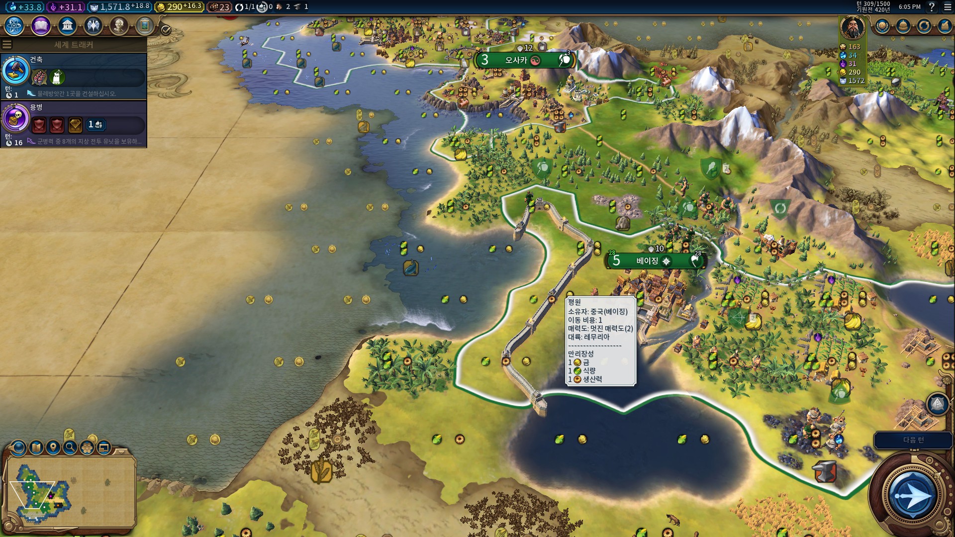 이제 알았는데, 여기 대륙에는 문명이 일본이랑 중국 둘밖에 없더군요.