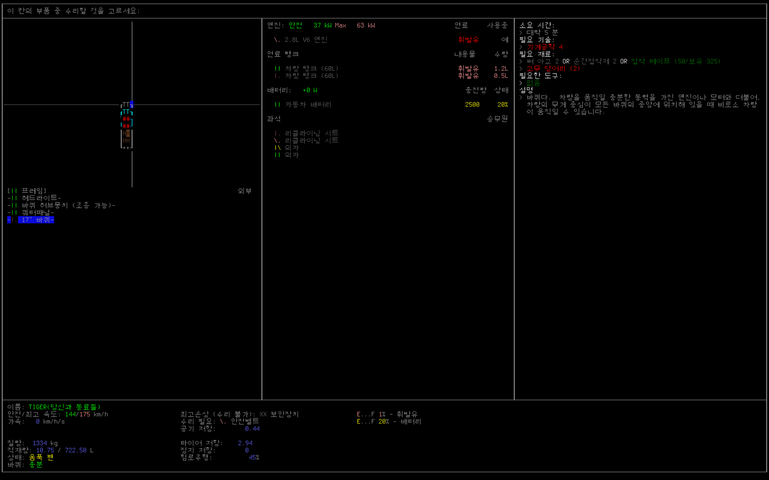 여기서 차량을 개조.. 하지는 않을 거고, 간단한 수리만 해보도록 합시다.