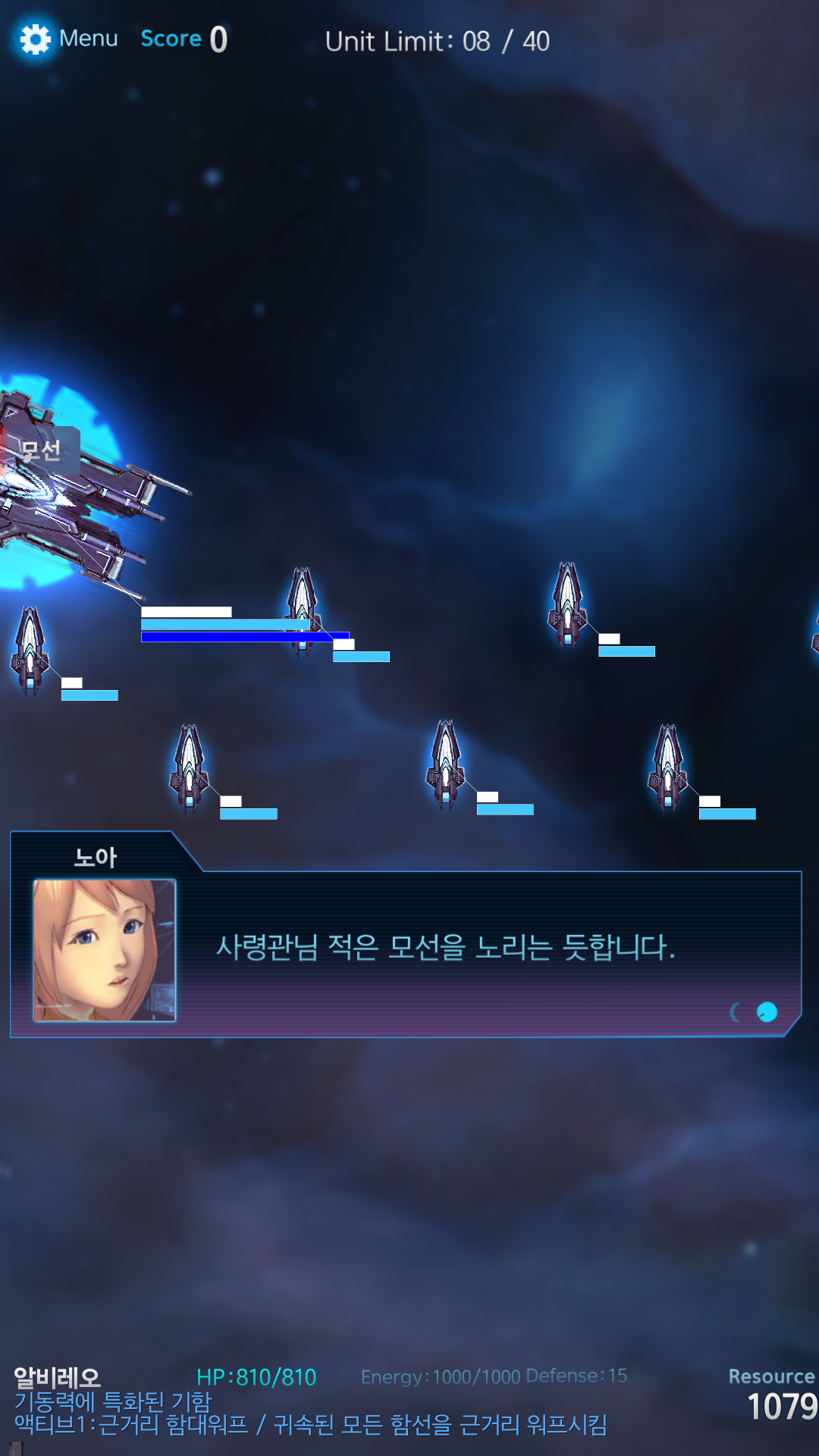 하지만 아직 모선이 완전한 건 아닙니다. 장거리 전초기지로 활약 하기 위한 자원채집 시설과 함선 건조 모듈 생산 시스템에 대한 점검이 필요합니다.