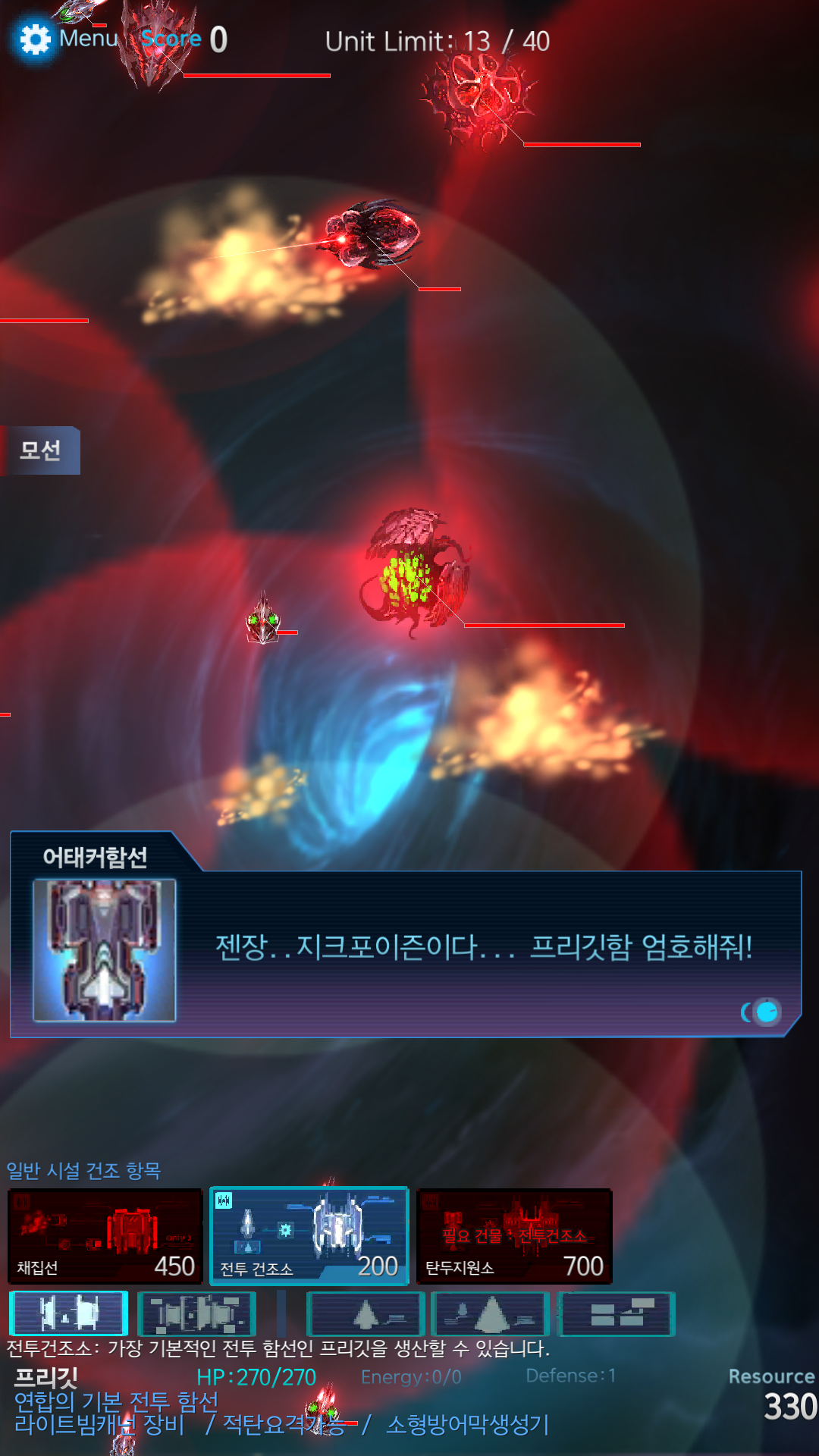 일단 빠르게 채집선을 배치하고, 기함지원본부를 배치해서 방어선을 형성합시다.