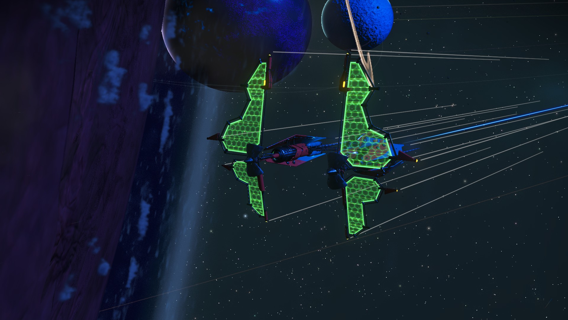 우주에서 펴지는 간지폭풍 날개와, 자체적으로 충전되는 펄스 드라이브라는 막강한 장점을 가지고 있습니다.