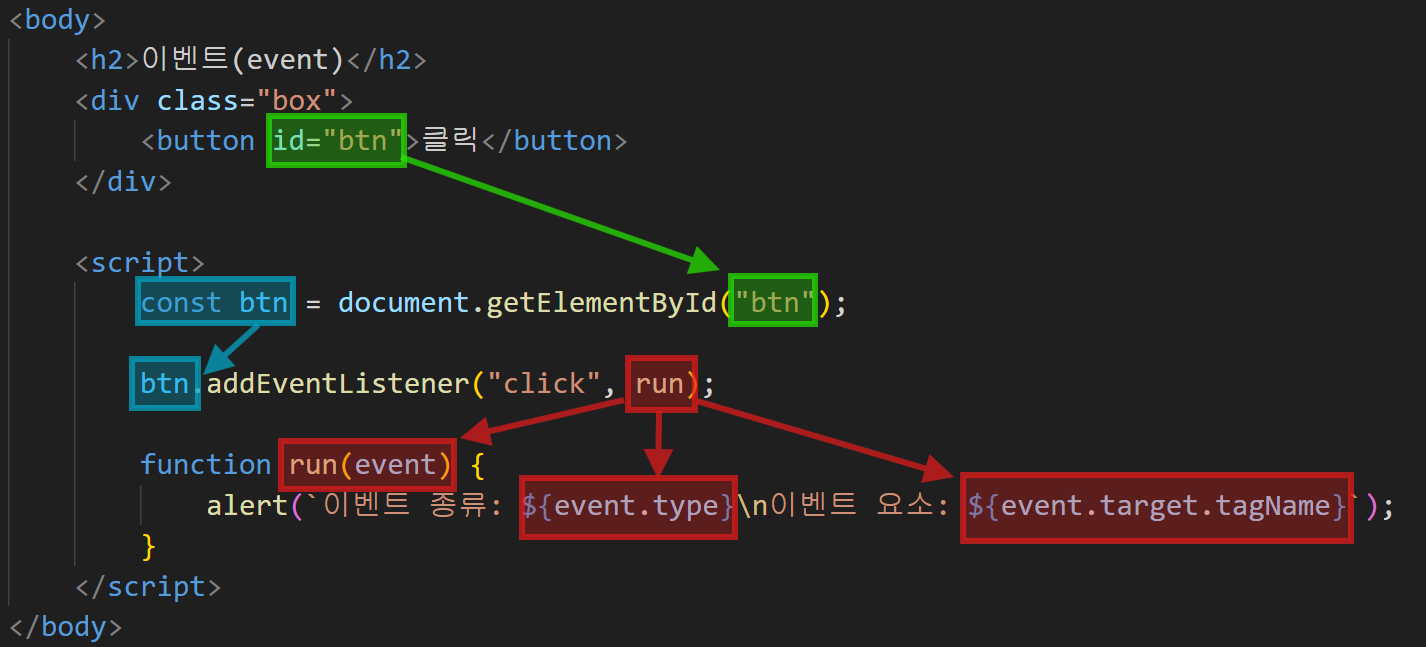 아니, 사실 run(event)에서 화살표가 뻗어나가는게 더 직관적인데.. 이것도 틀리진 않았으니 그냥 봅시다.
