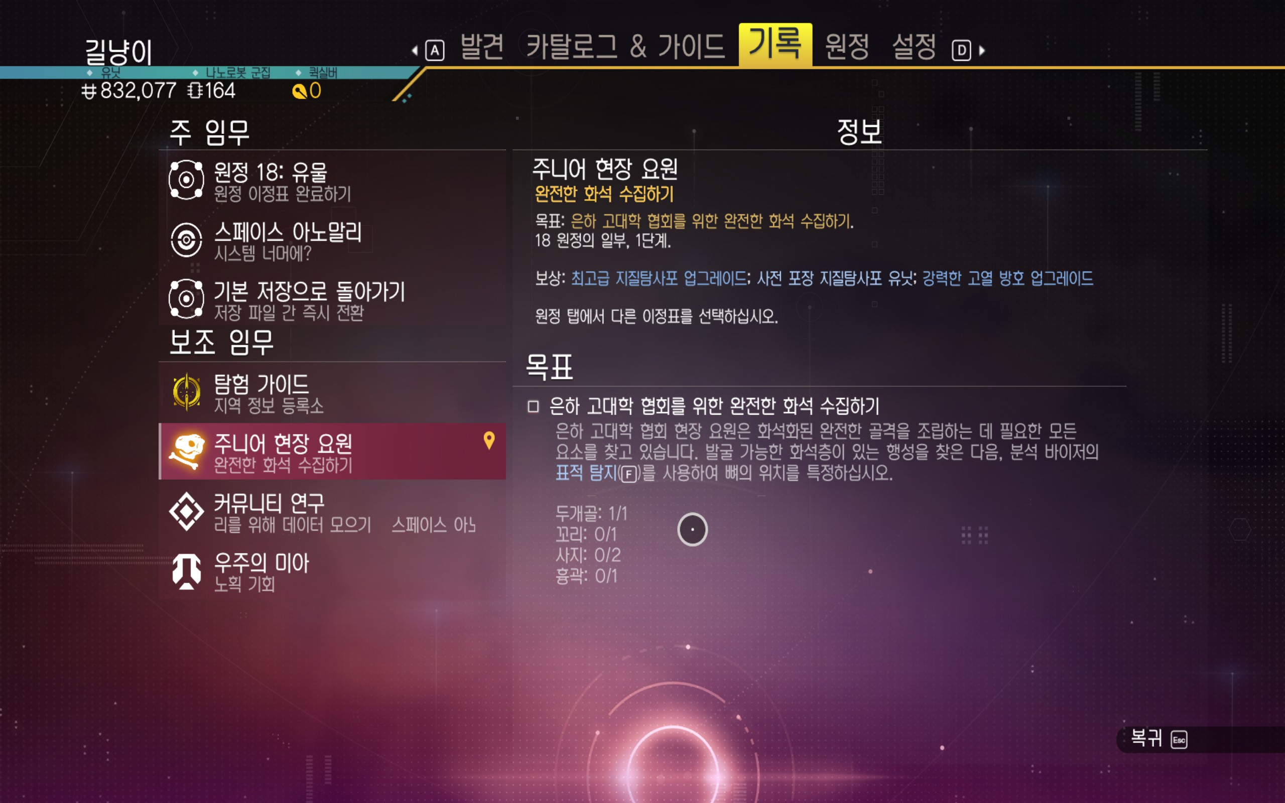 일단 본론으로 돌아와서, 화석 채광이나 마무리합시다.