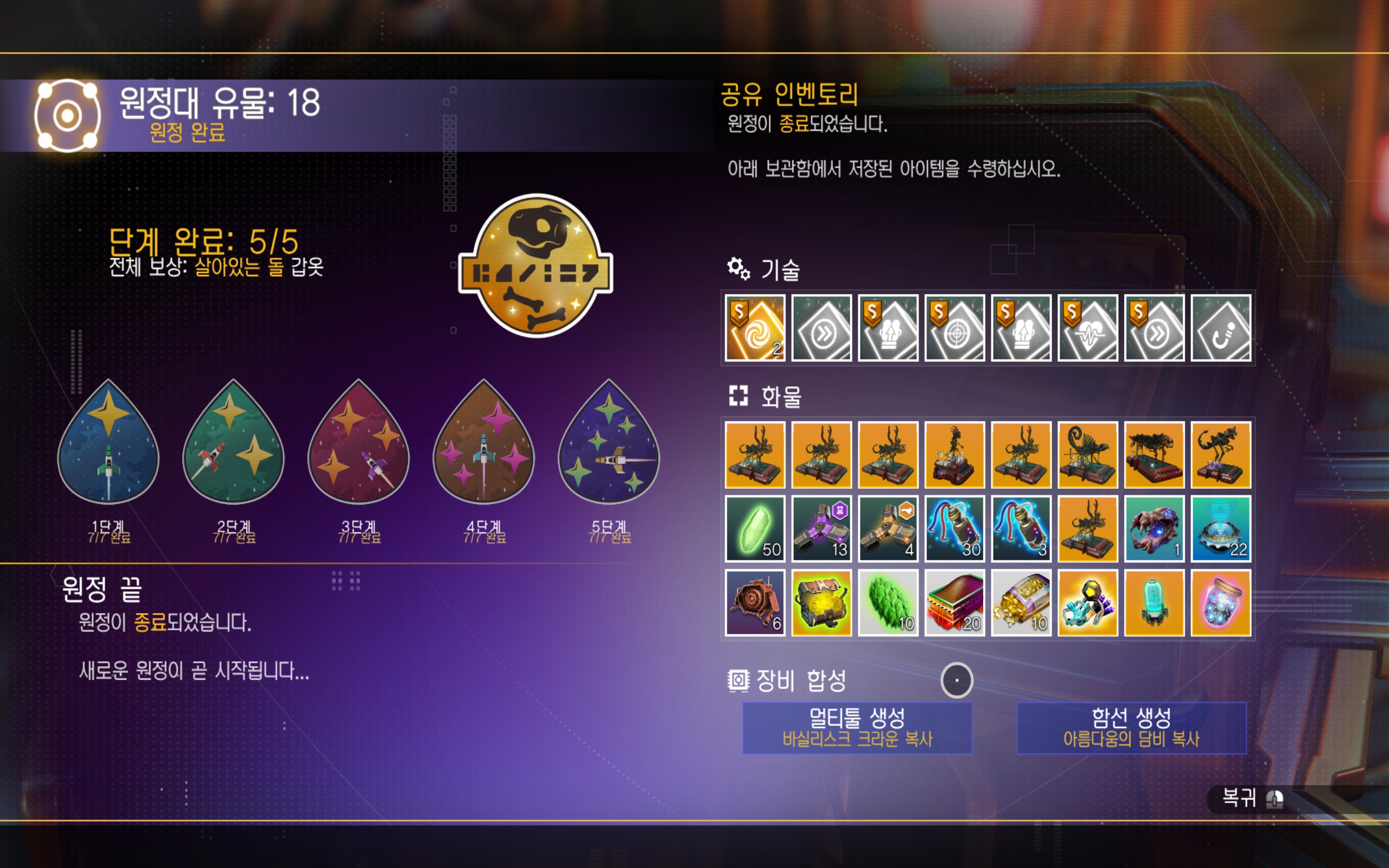 이렇게 18번째 원정, "유물"의 모든 이정표를 완료했습니다.
