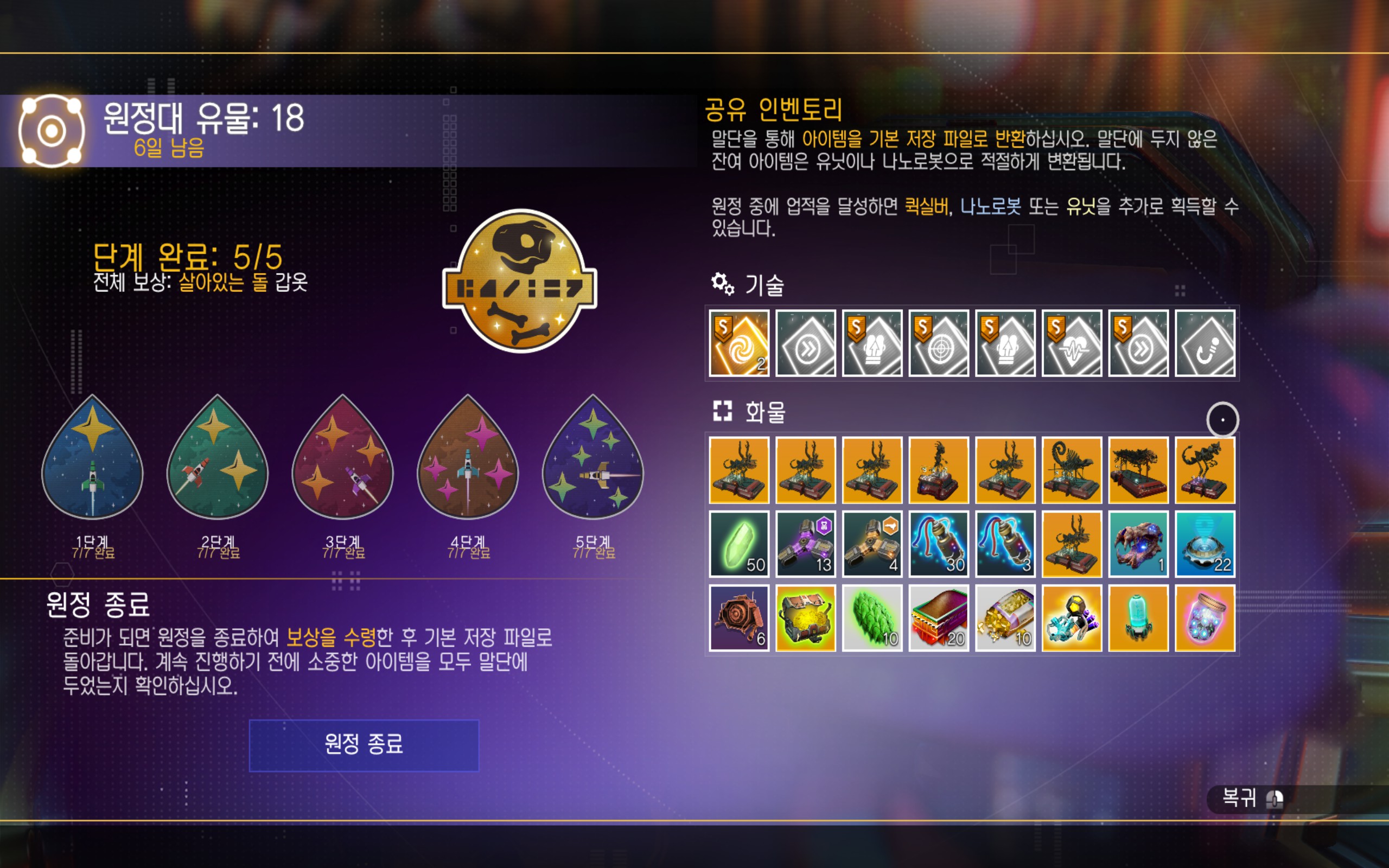 자, 원정도 끝났으니 엑소슈트 인벤토리를 정리하고..