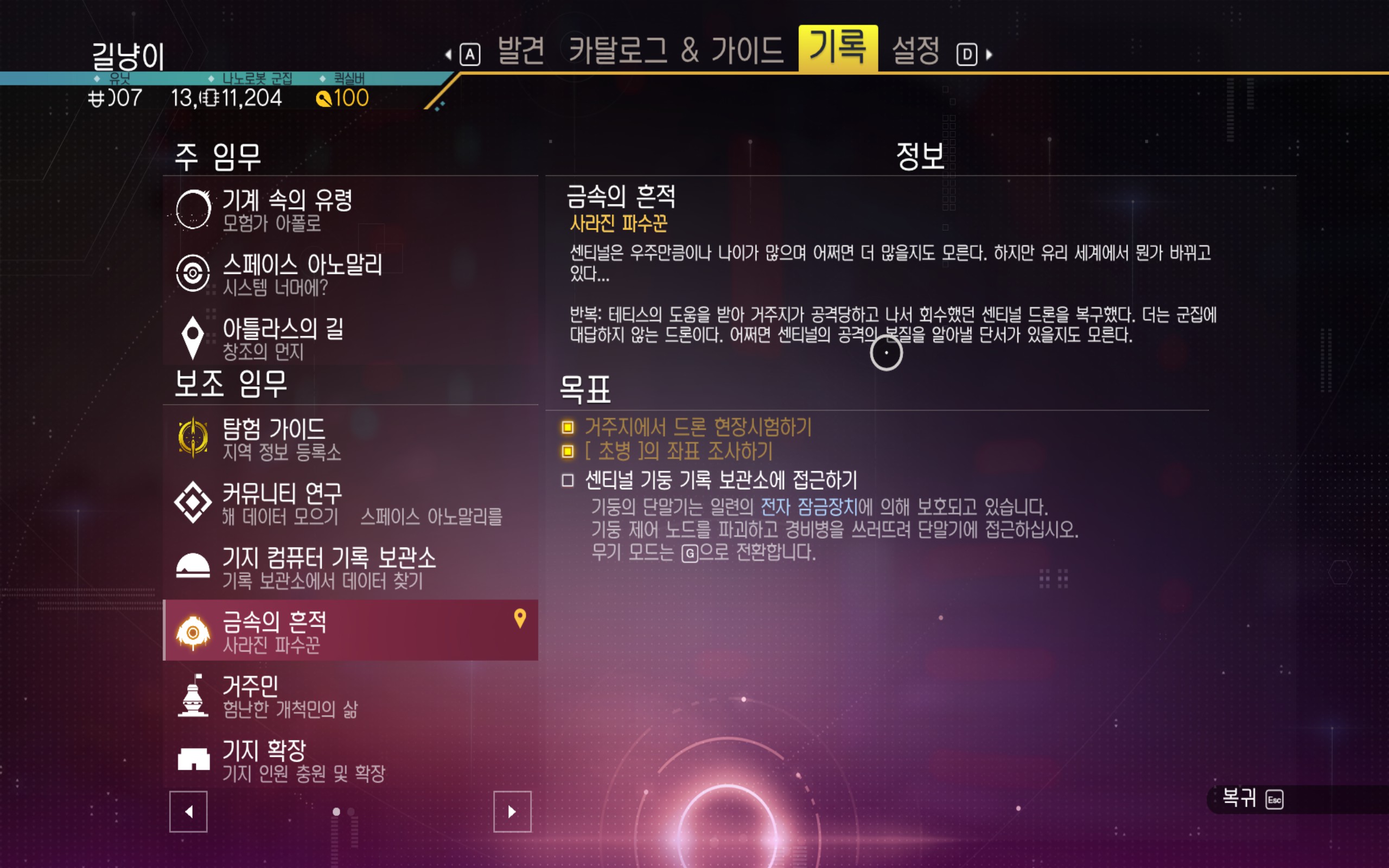 센티널 기둥 기록 보관소에 접근해서 제어 노드를 파괴해야 합니다