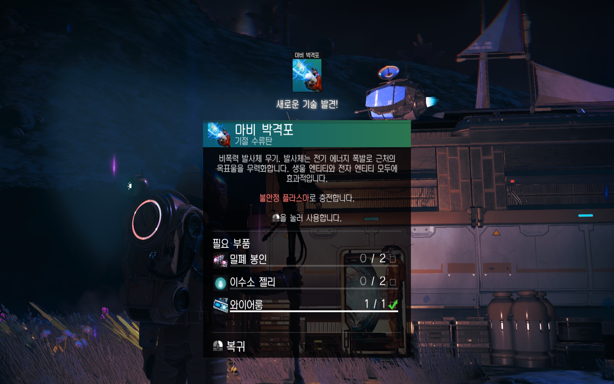 반물질 하나랑 생명유지 젤 하나를 넣어서 만들어 줍시다.