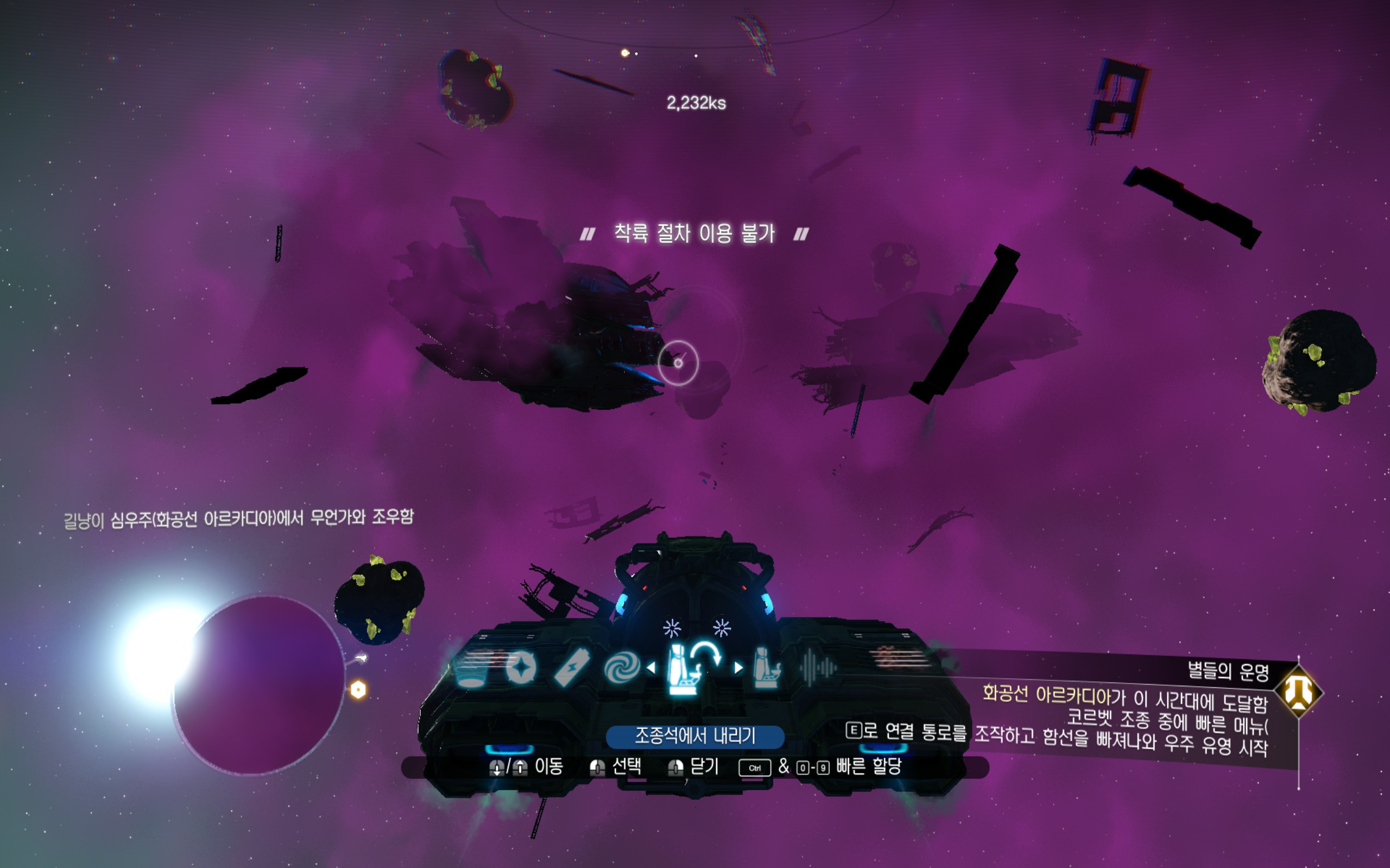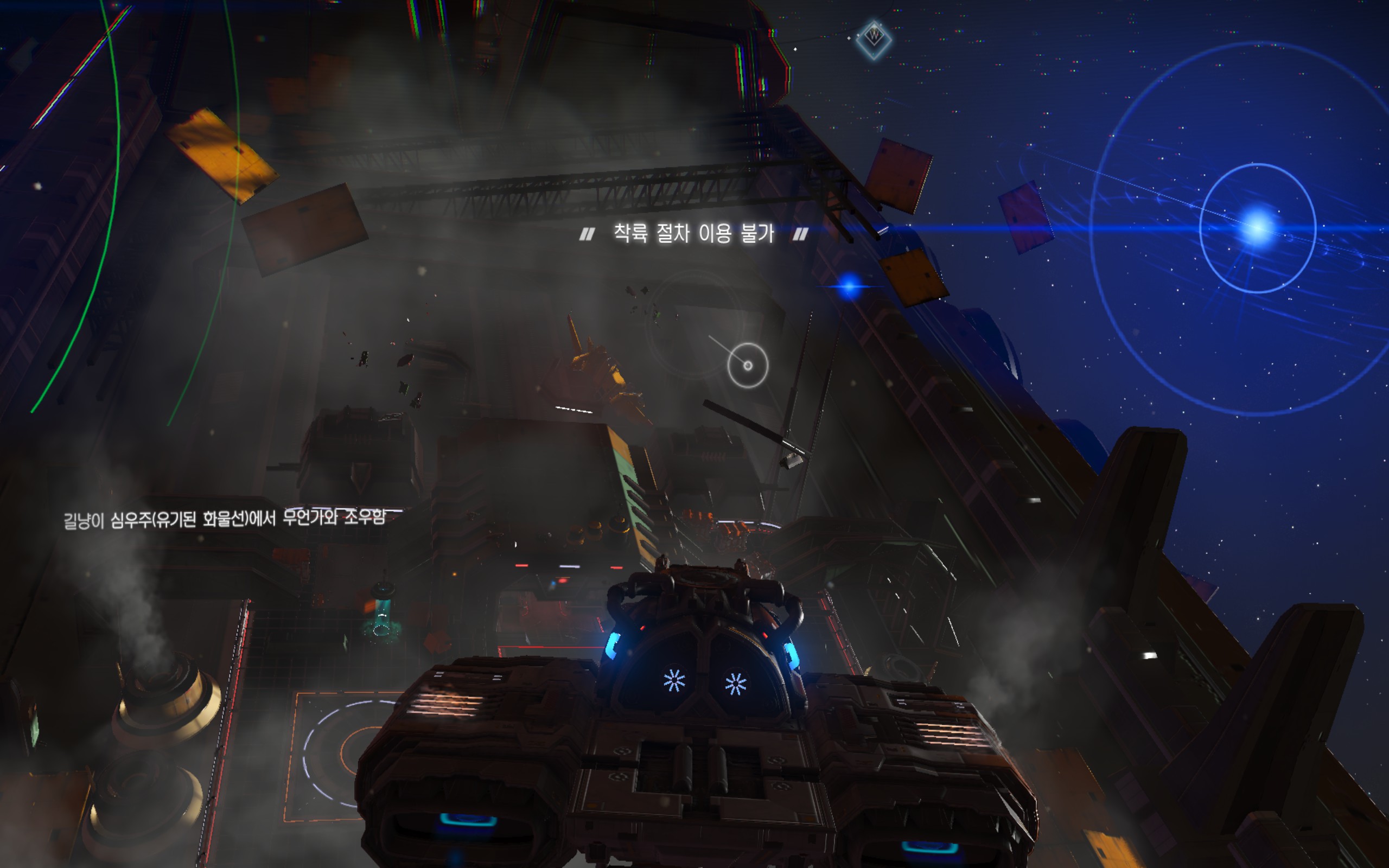 저 푸른 코르벳 착륙지점에 착륙한 뒤, 공간이동을 통해 이동해주세요