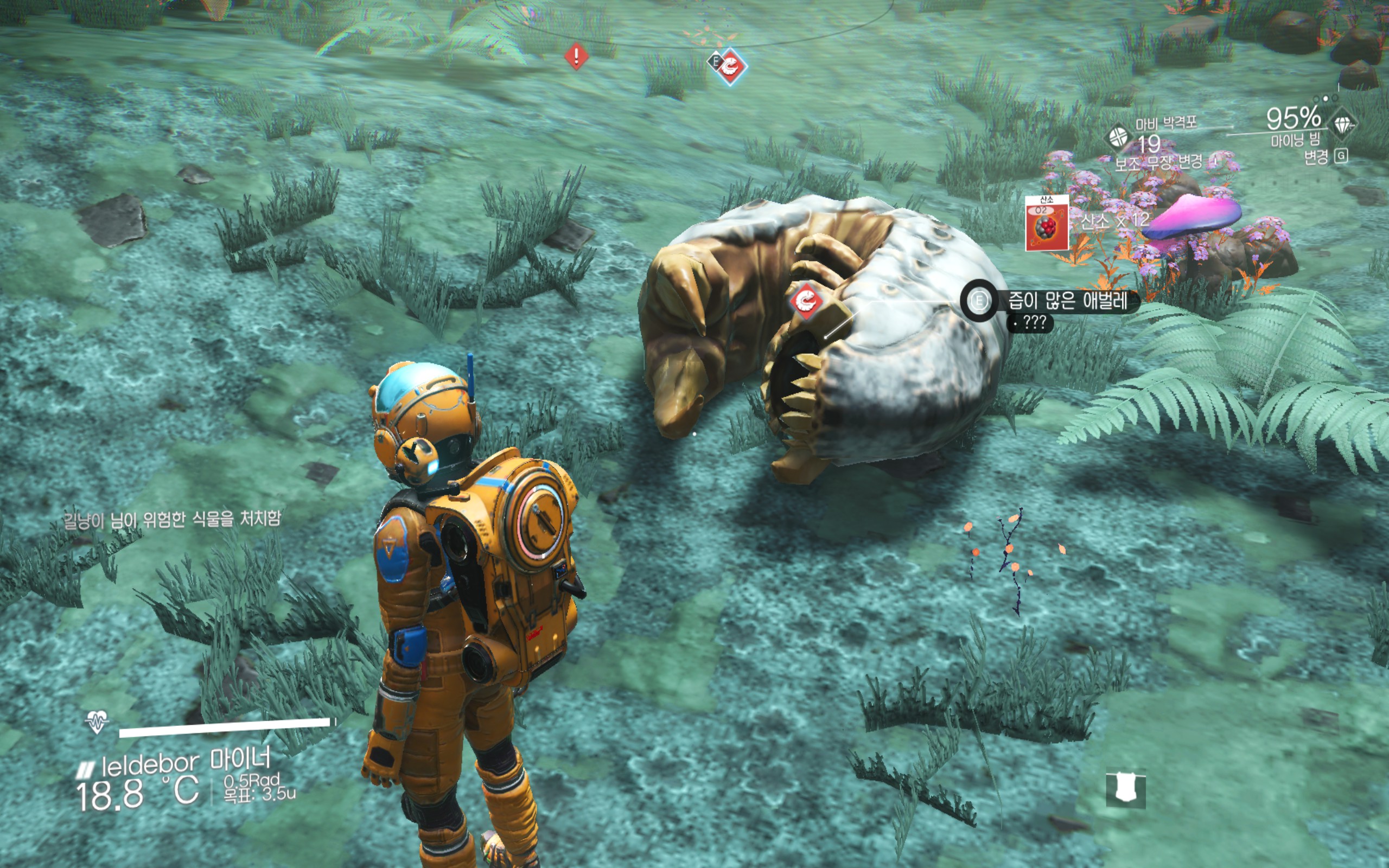 행성에 착륙해서 분석 바이저의 표적 탐지 모드로 즙이 많은 애벌레를 찾아 줍시다.