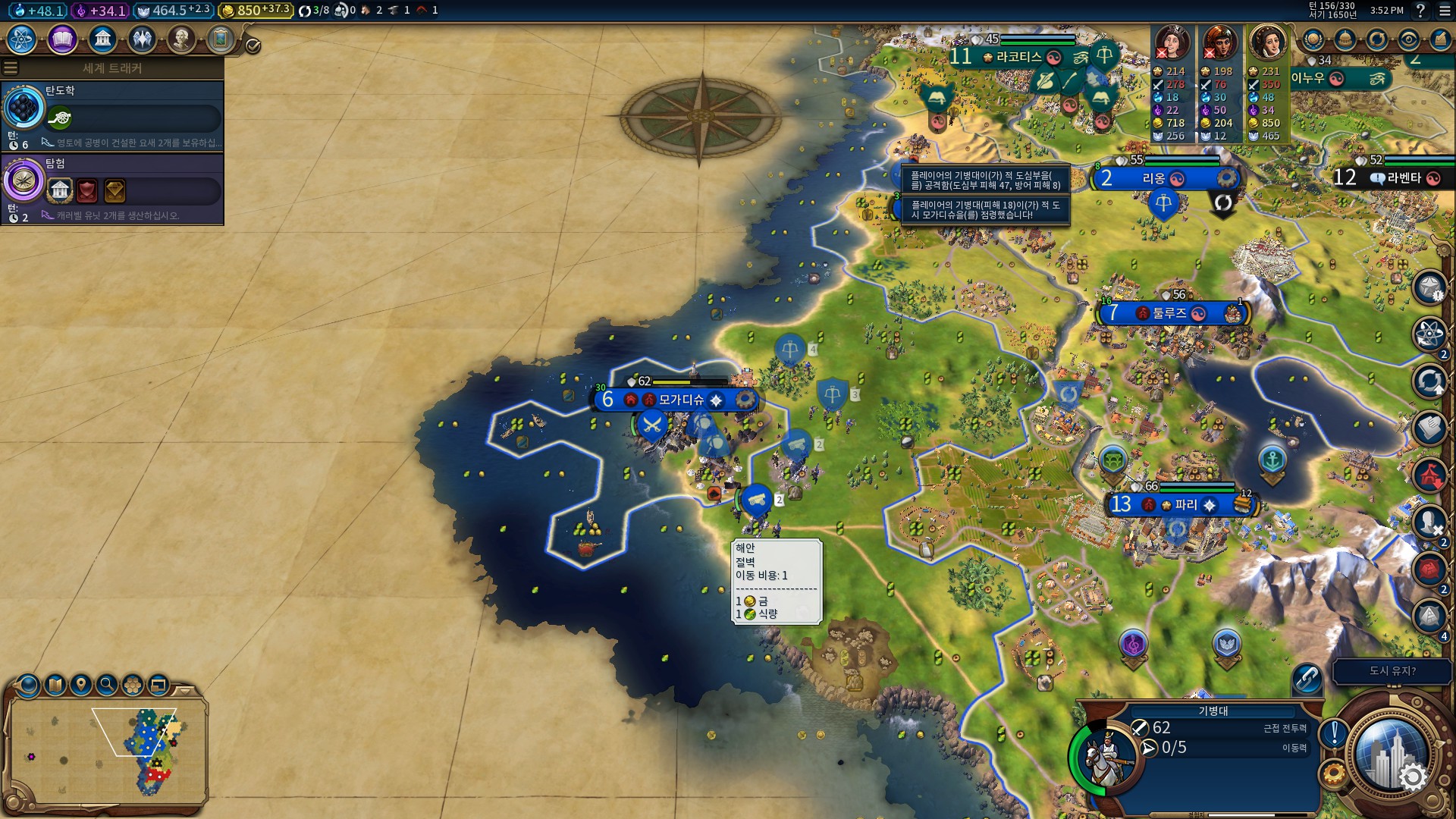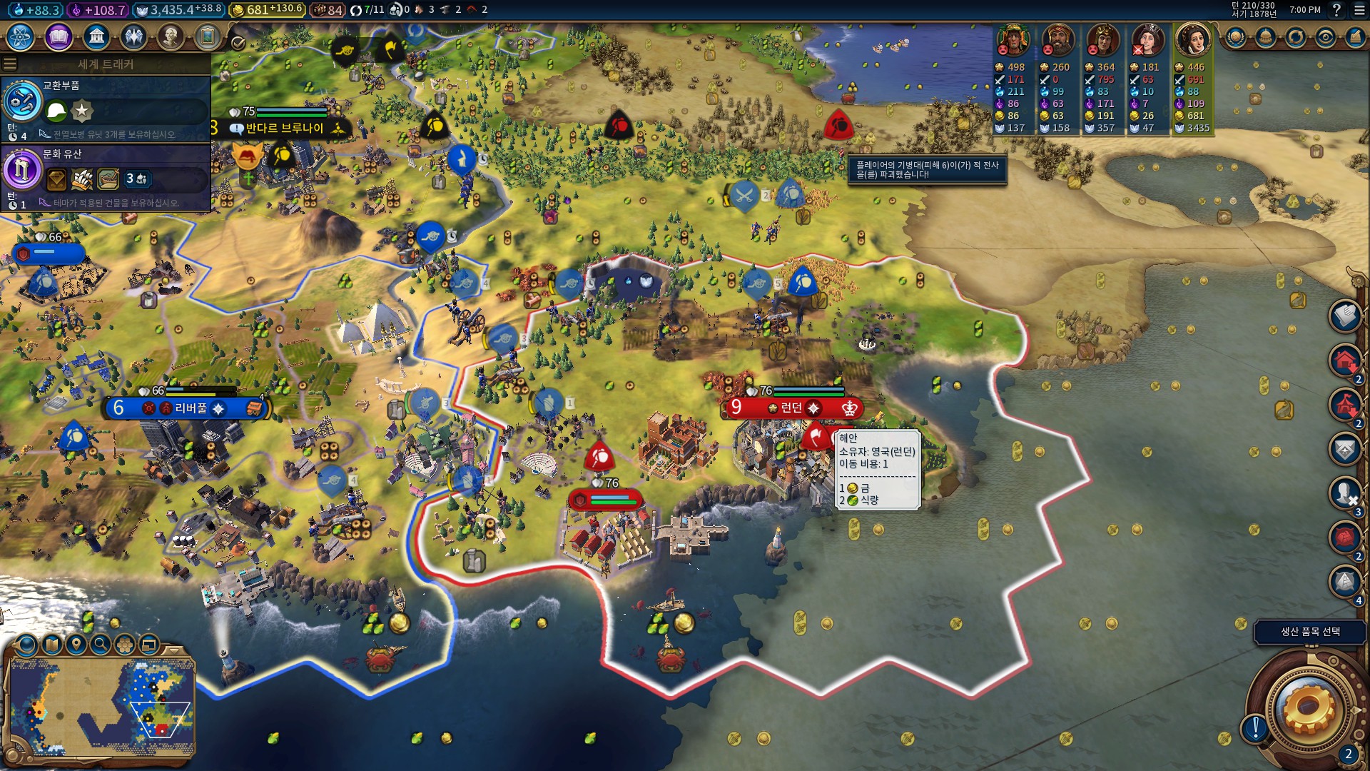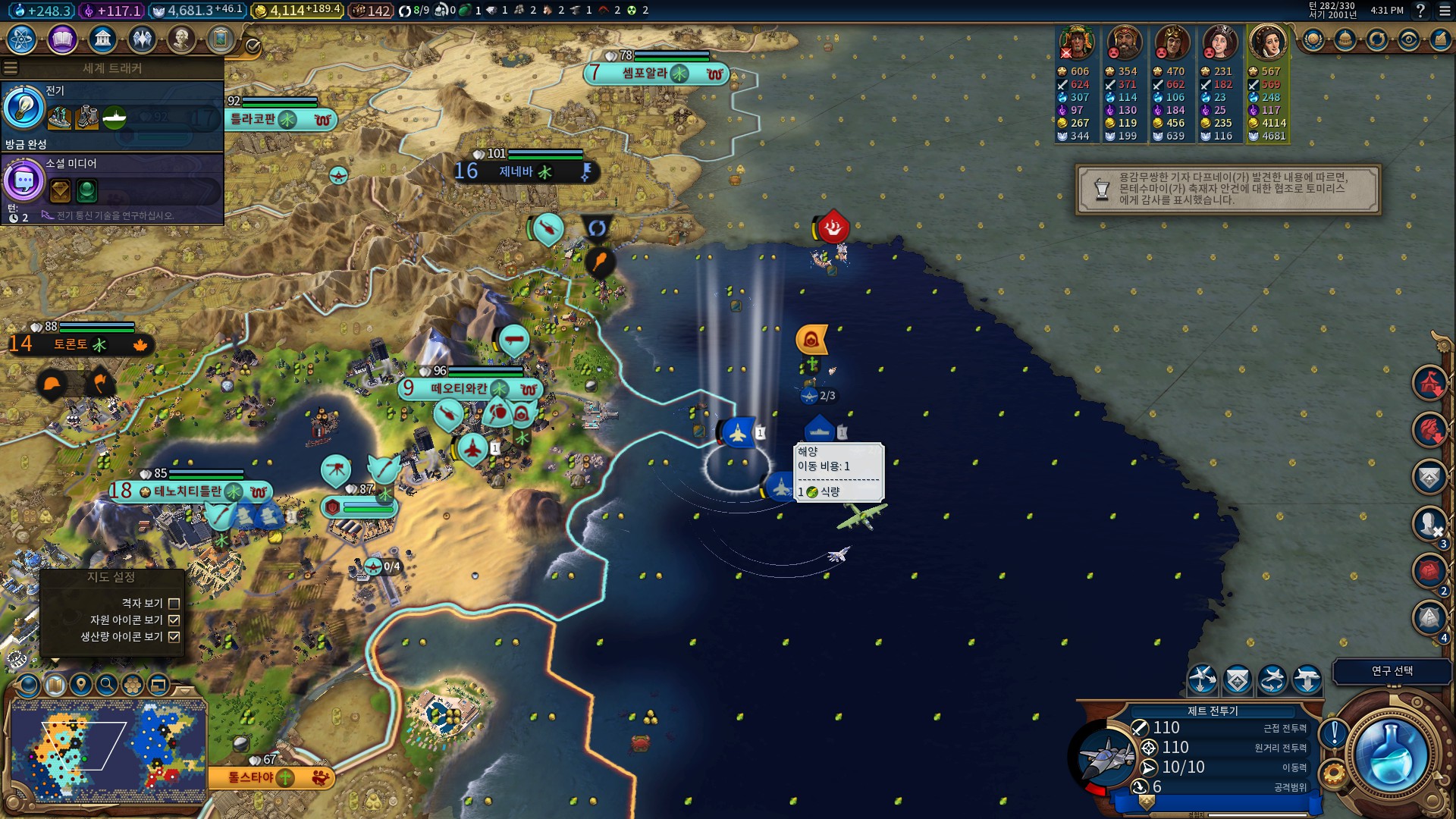 이렇게 서대륙을 완전히 장악하고, 내부교역을 돌려서 과학승리를 준비하면..