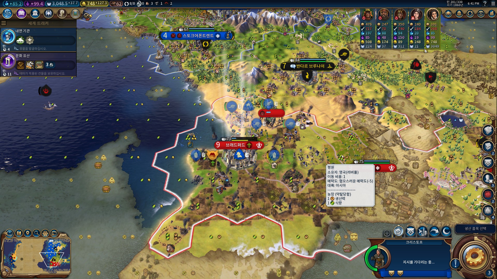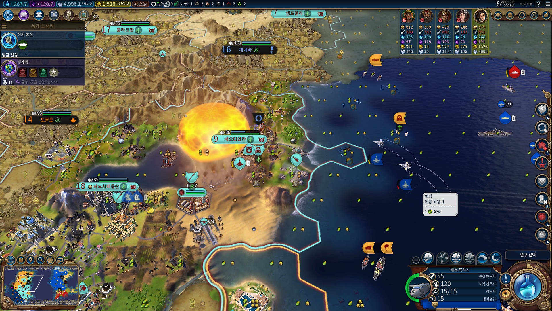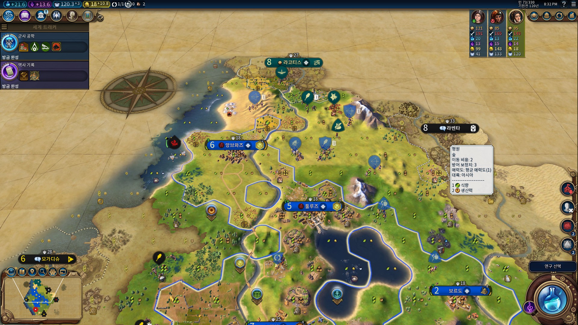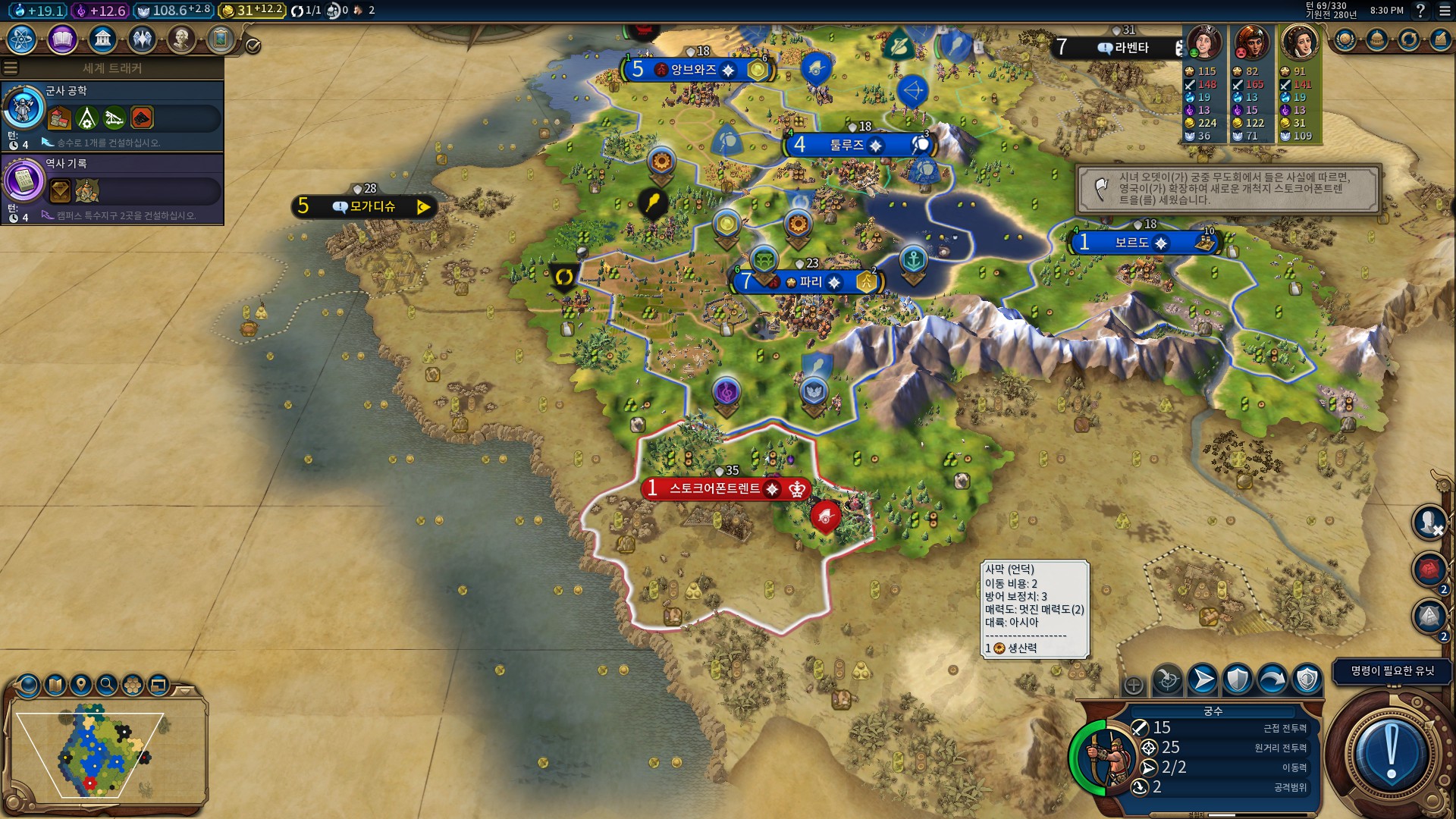 이렇게 서대륙을 완전히 장악하고, 내부교역을 돌려서 과학승리를 준비하면..