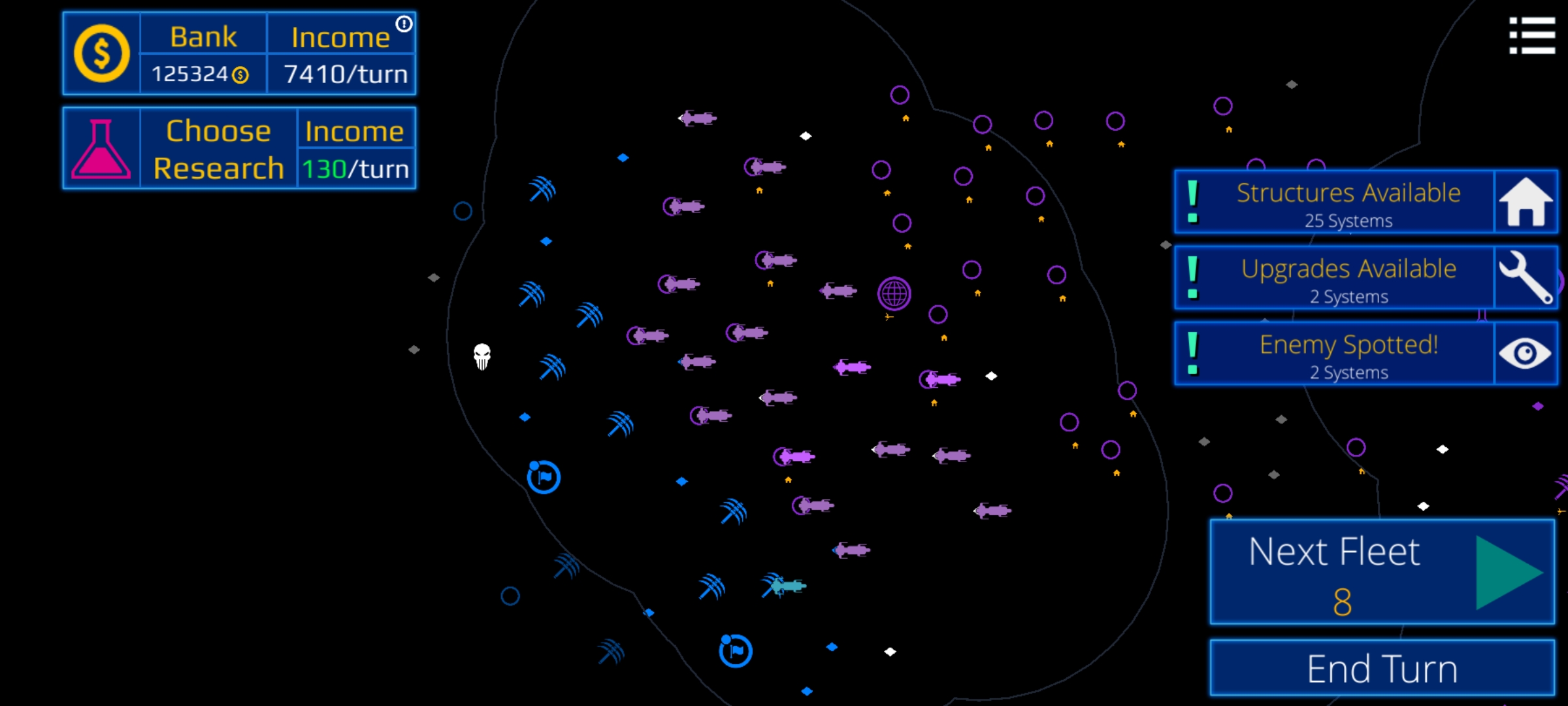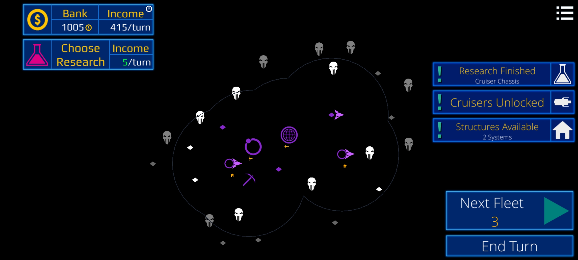 셋보고 알아서 싸우라고 하는 동안, 함대는 동부에 위치한 외곽 광원들을 정리하여 자금줄로 바꾸도록 합시다.