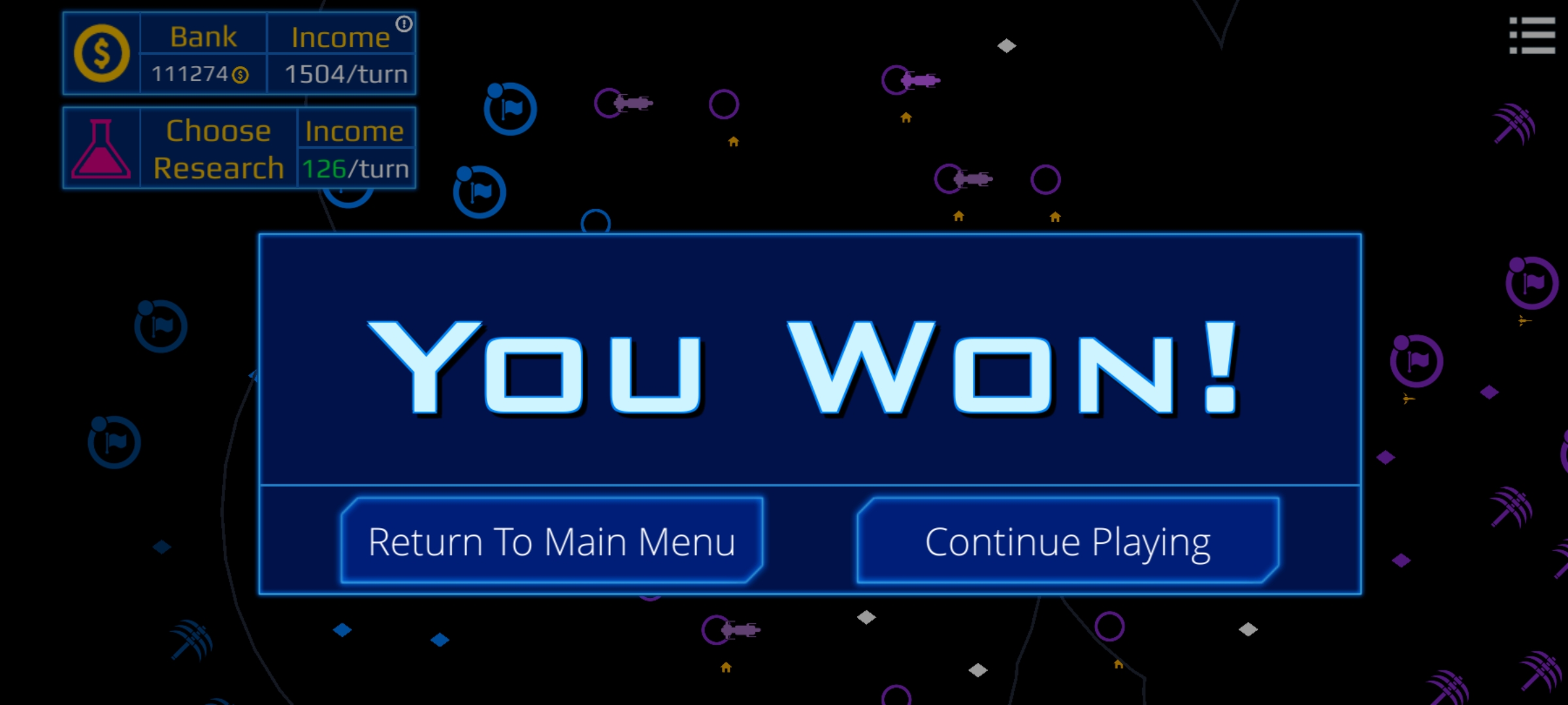 참으로 아쉽게도, 게임 내에서는 일정 % 이상만 점령하면 승리 판정이 나옵니다.